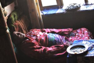 Nel choskhang, la cappella di famiglia, l’oracolo ha iniziato la procedura che indurrà la trance e la possessione. La signora, con un cenno, ci invita ad andare.
